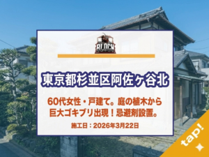 杉並区施工事例 【杉並区阿佐ヶ谷北】60代女性・戸建て。庭の植木から巨大クロゴキブリが室内に!忌避剤設置と床下・窓際の徹底封鎖(施工日:2026年3月22日)